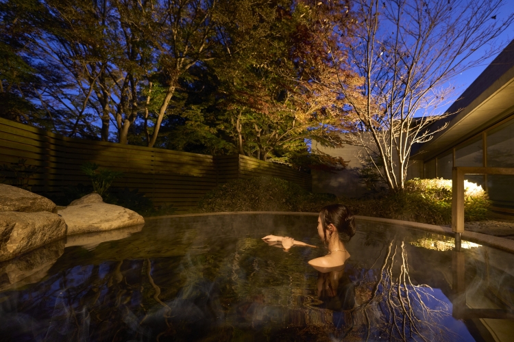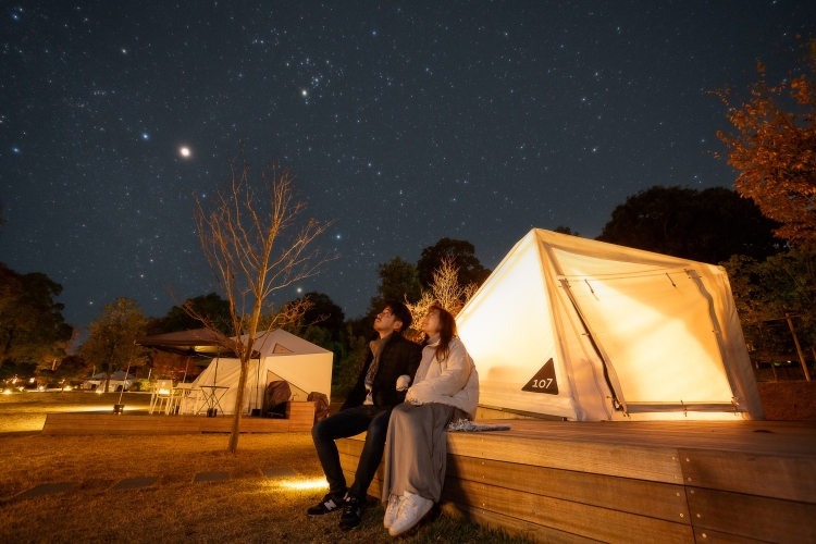 イベント終了後は、温泉グランピングエリアの天然温泉『紅葉乃湯』でゆっくりと温まりましょう。紅葉乃湯は、とろみのある黒湯で身体を芯から温めます。湯上りには、大切な人と一緒に満天の星空を眺め、贅沢なひとときをお過ごしください。