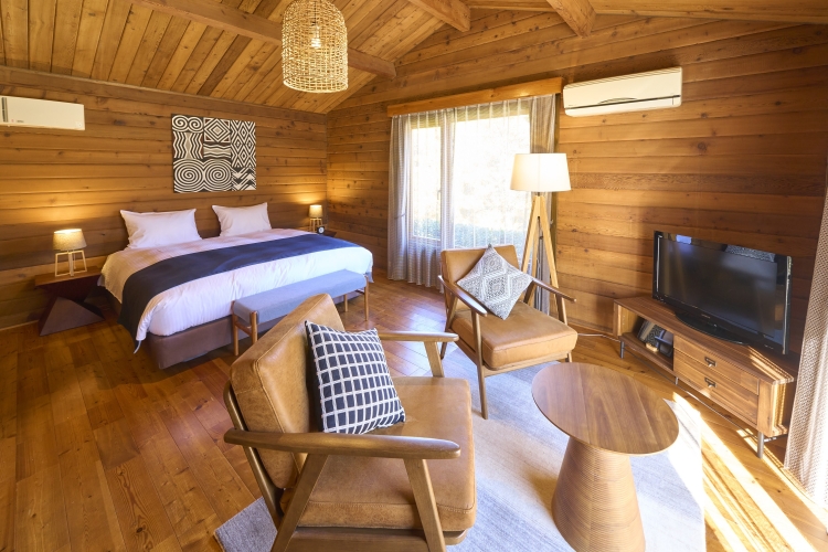 本プランのお部屋タイプは、温泉グランピングエリア、リゾートホテル、ログコテージ、愛犬と泊まれる宿泊エリアからお選びいただけます。パートナーとのクリスマス旅行なら、キングサイズのダブルベッドを備えた「テラスハウス ダブル」がおすすめです。