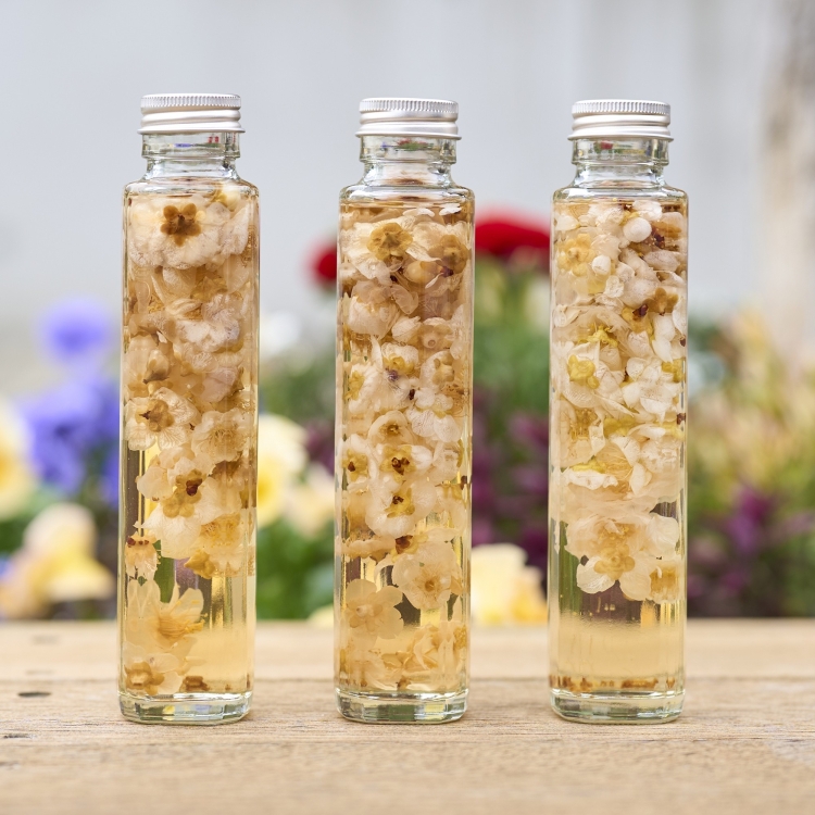 梅の花の収穫から体験できる「梅のチンキづくり」を開催いたします。チンキとは、植物をアルコールに漬け込み、香りや成分をゆっくりと抽出する昔ながらの保存方法です。梅園をお散歩し、梅の花を摘み採り、梅の甘く優しい香りを瓶の中に閉じ込めます。完成した梅のチンキは、お風呂に入れたり、アロマやルームスプレーなどとしてお使いいただけます。