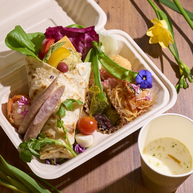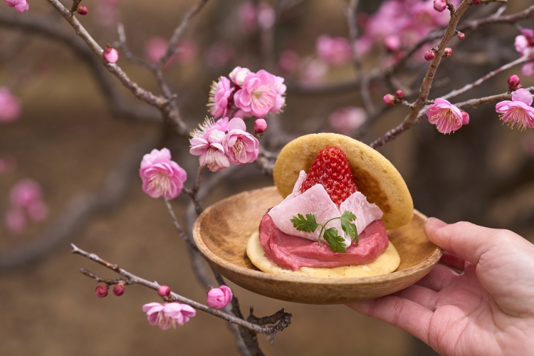 春のマルシェでは、千葉県内を中心に約20店舗の地域の生産者やアーティストが集結します。梅をモチーフにしたお食事やスイーツ、クラフト雑貨などが並び、春ならではのお買い物とグルメをお楽しみいただけます。ピクニックシートをご持参のうえ、マルシェでご購入いただいたランチBOXやスイーツを梅の香りが広がる梅園の中でお召し上がりください。