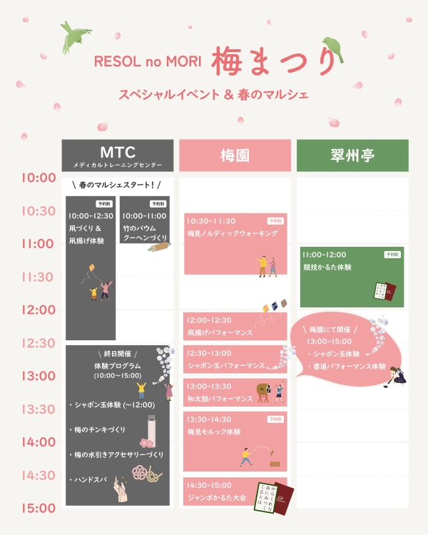 2026年3月1日(日)に、関東最大級の森のスパリゾート『リソルの森』の梅園にて、「RESOL no MORI 梅まつり」のスペシャルイベントを開催いたします。さらに同日、『メディカルトレーニングセンター』館内にて、「春のマルシェ」を開催いたします。