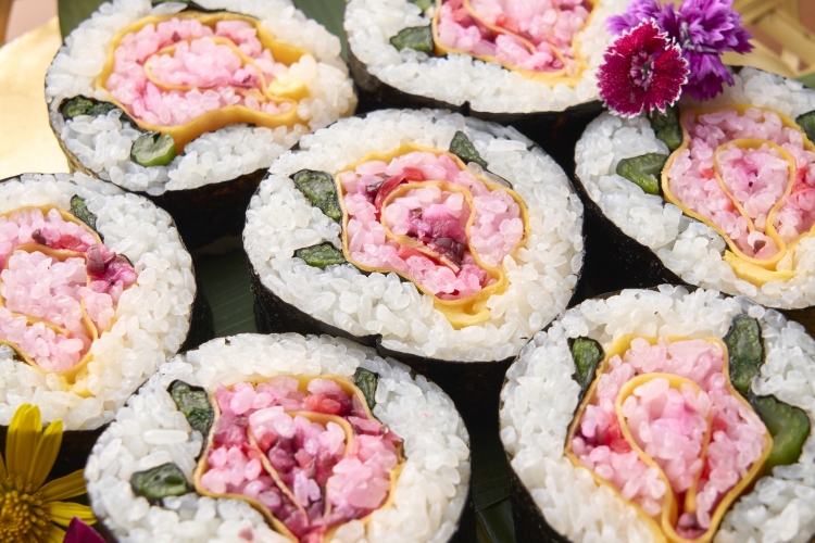 完成した太巻き花寿司は、その場でランチとしてお召し上がりいただけるほか、お持ち帰りも可能です。作り方を習得して、ご家族のお誕生日パーティーやお子様の遠足や運動会のお弁当など特別な日に振る舞えば、喜ばれること間違いなしです。