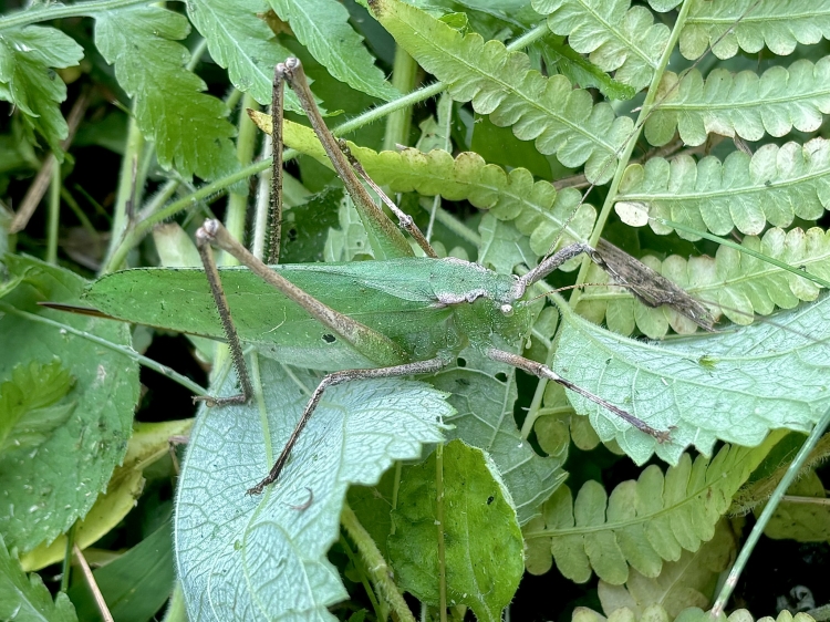 ロングジップスライドのスタート地点近くの草地にいたクツワムシ