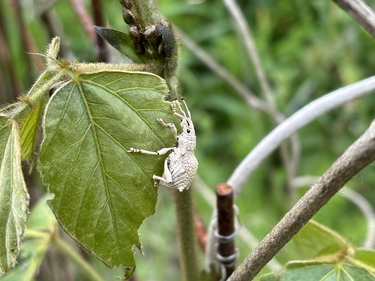 クズのつるにつかまっていたオジロアシナガゾウムシ
