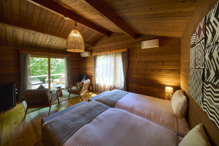 本プランでご案内するお部屋は、グランヴォー スパ ヴィレッジの「テントキャビン」か「テラスハウス」、「ホテルトリニティ書斎」からお選びいただけます。