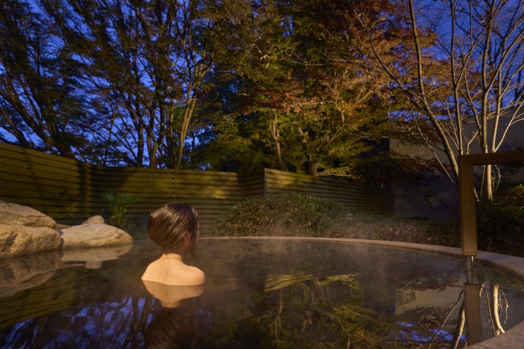 また、エリア内には、『紅葉乃湯』という黒湯の天然温泉を備えています。地下600mと浅い深度からふんだんに湧出するナトリウム炭酸水素塩鉱泉で、とろりとした肌触りが特徴で"美肌の湯"と称されるほどツルツル美肌に生まれ変わる泉質です。ツアー終了後に、ゆっくりと身体を温めてお休みください。