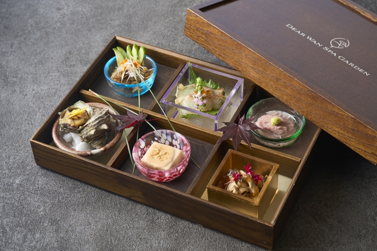 2025年10月1日(水)から12月5日(金)までの期間、リソルの森の愛犬と泊まれるプライベート温泉付き宿泊エリア『Dear Wan Spa Garden(ディア ワン スパ ガーデン』にて、房総自慢の海と山の幸を贅沢に使用した創作美膳の秋メニューをご用意いたしました。