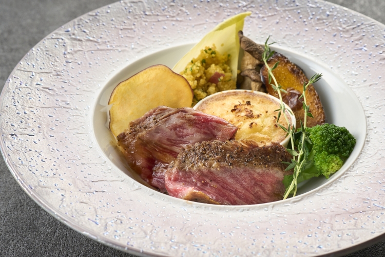■国産牛のパルマンティエ風とロティ 季節野菜とタブレサラダを添えて