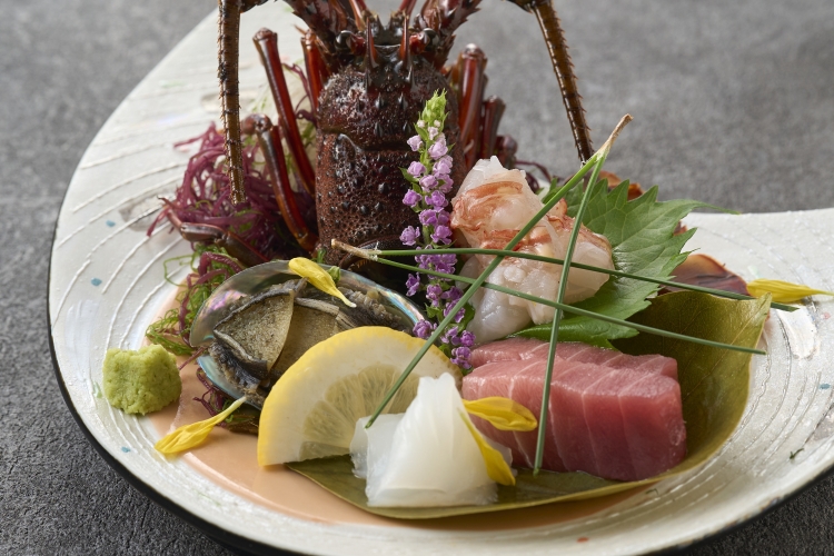 伊勢海老洗い姿盛り 南鮪 あおり烏賊 大原鮑 妻物一式