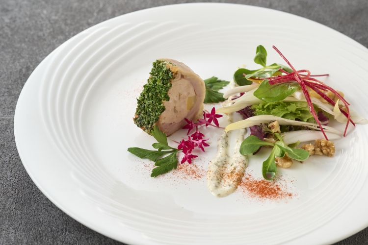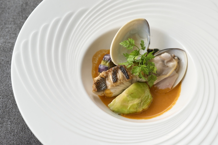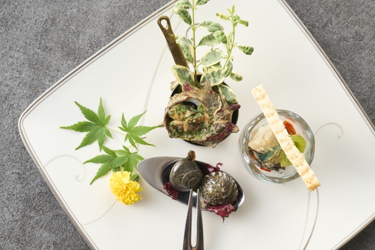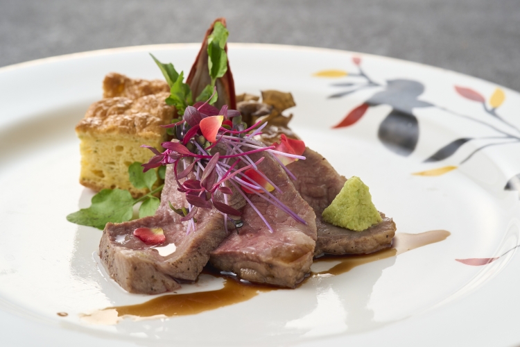 房総の海が育む貝の旨味を凝縮した「房総コキヤージュ」や柔らかくジューシーな肉質と濃厚な味わいが特徴の「幸せ絆牛サーロインの低温調理 ヨークシャープディング添え」など、食材の宝庫・房総の海と大地の恵みを活かし、心が華やぐアートな盛り付けで食べ手を魅了するフルコースです。