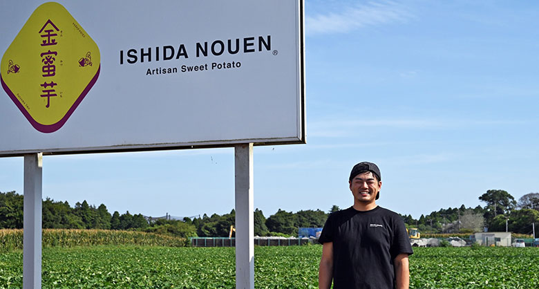 歴史的建造物と美しい町並みが残る観光地「佐原」に蜜芋洋菓子店「金蜜堂」を開くなど、生産から加工、販売までを一貫して行い、さつまいもの新しい価値と体験を提供している石田農園の石田湧大さんに、金蜜芋づくりへの情熱を伺いました。