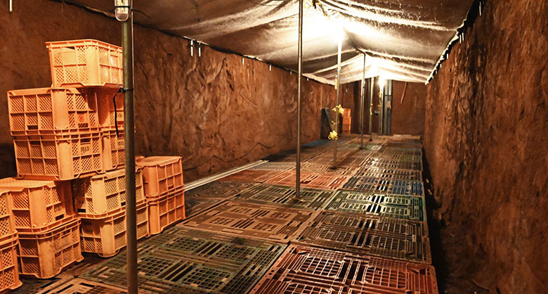 土手をくり抜いてつくられた「横穴式貯蔵庫」。エアコンなしで夏涼しく冬暖かい。