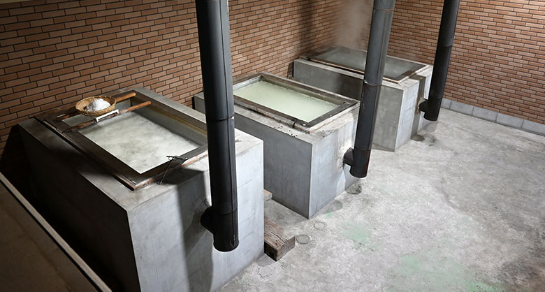 山路「以前は釜がひとつしかありませんでしたが、引き継いでからは釜が2基になり、今は3基に増えています。3基に増やしたのには理由あって。手づくりの塩はいろいろとありますが、わたしは海水に含まれている炭酸カルシウムや硫酸カルシウムを除きたいんです」