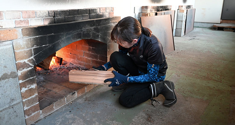 塩づくりを引き継いた山路さんが、もうひとつ改良したのが焚口。先代の時代は、釜と焚口が一体化していましたが、室内で炊くと釜に余計な物質が入り込むため、焚口を外に備え付け、より衛生的に塩が精製できるように工夫しました。
